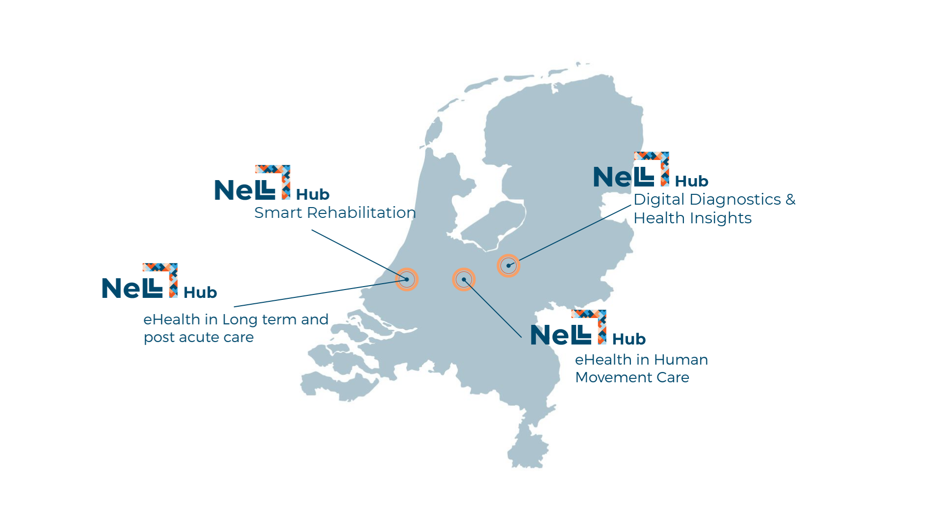 Een NeLL Hub is een extern opererend team met een sterk specifiek specialisme op het gebied van wetenschappelijk onderzoek naar en/of de ontwikkeling van en/of implementatie van eHealth. Deze teams werken zelfstandig op diverse locaties in binnen- en buitenland waaronder in (academische) ziekenhuizen, universiteiten of bijvoorbeeld in de paramedische zorg of het bedrijfsleven.